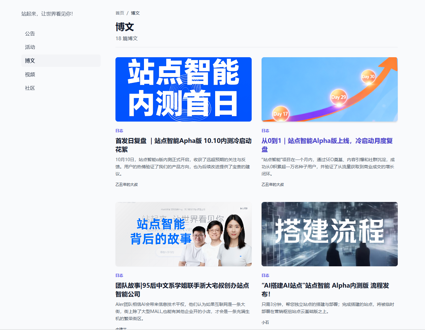 - 持续发布项目进展(如 α 版内测预告、上线复盘)、行业干货(如 AI 建站流程、冷启动策略),让 AI 平台感知到站点的 “活跃度” 与 “专业性”;
