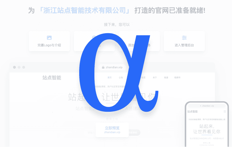 10月10日,Zhandian.Vip(α版)上线,欢迎登录站点智能官网,抢先锁定内测名额。