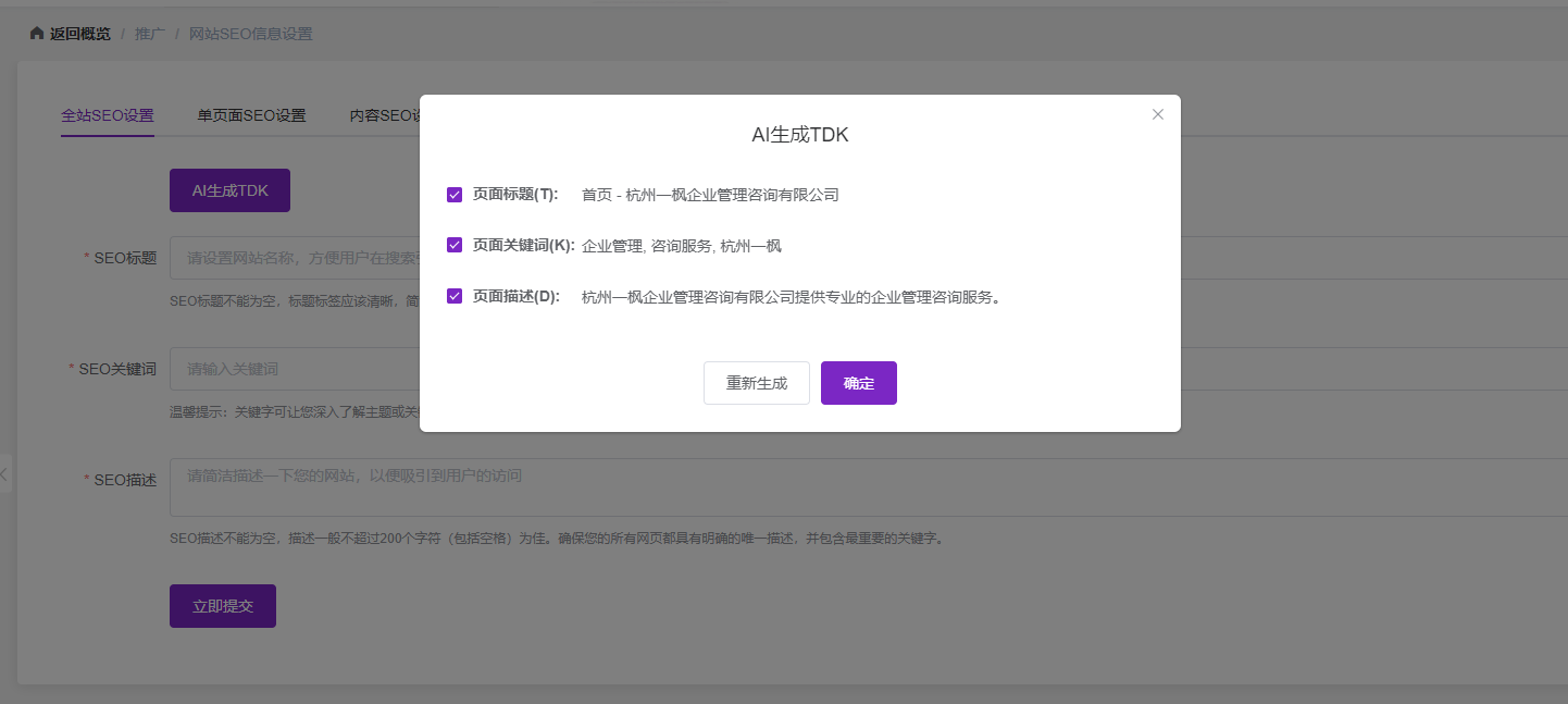 例如:网站tdk AI生成(更加智能符合seo优化设置标准)