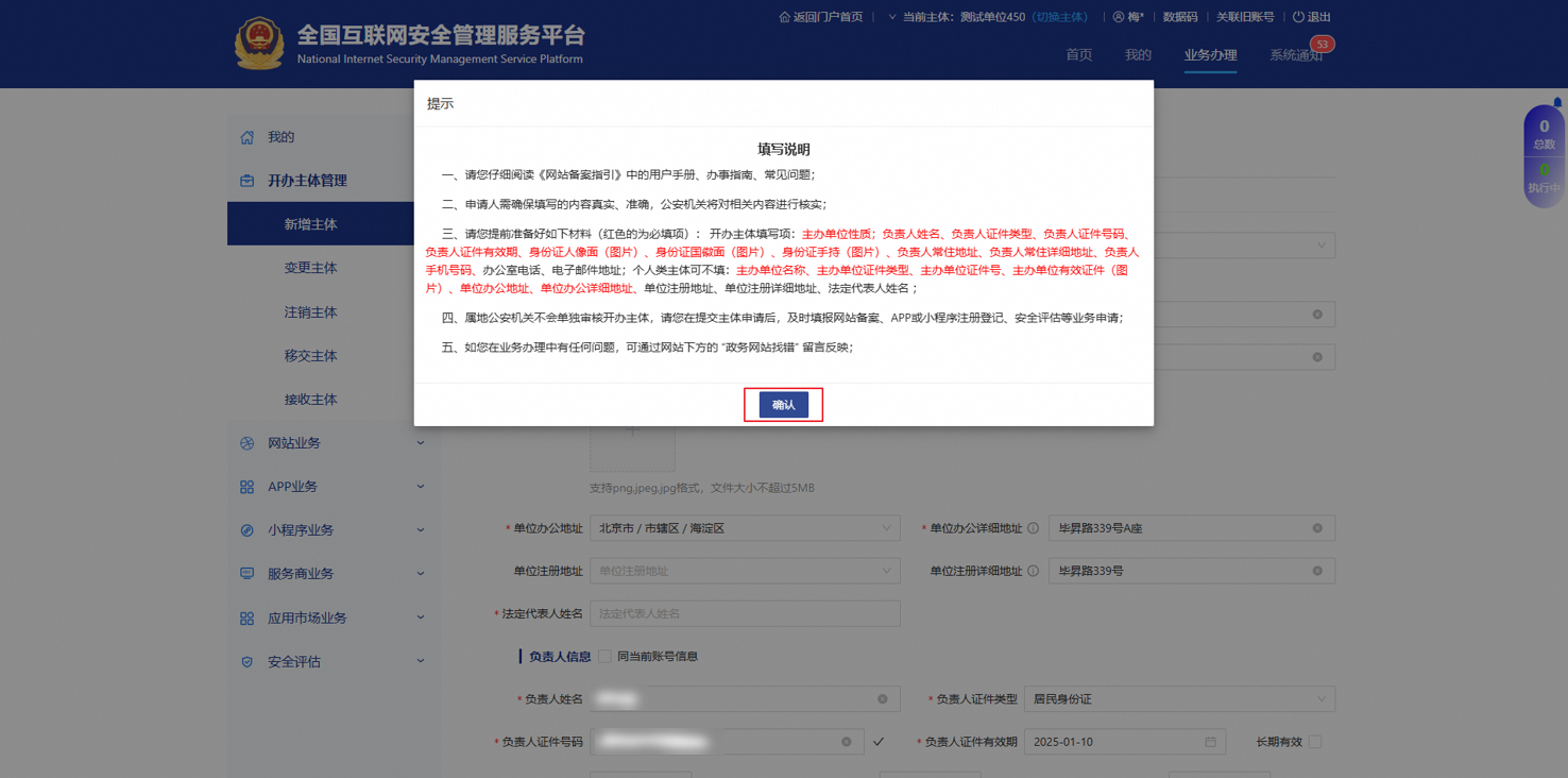 根据提示填写主办者信息、网站信息等,上传图片资料。