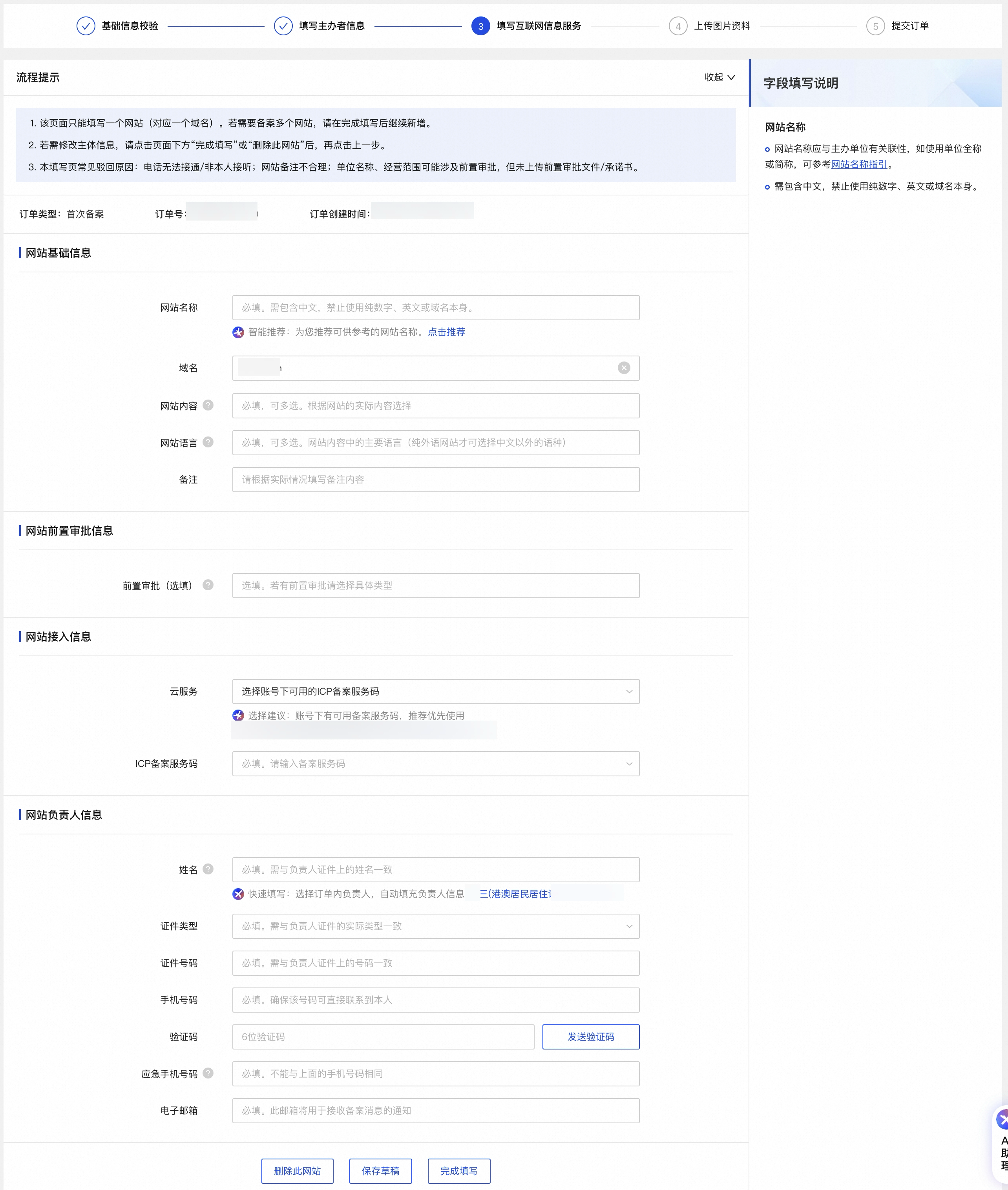 单击创建网站,系统将自动创建网站草稿,并跳转至新办网站申请页面。