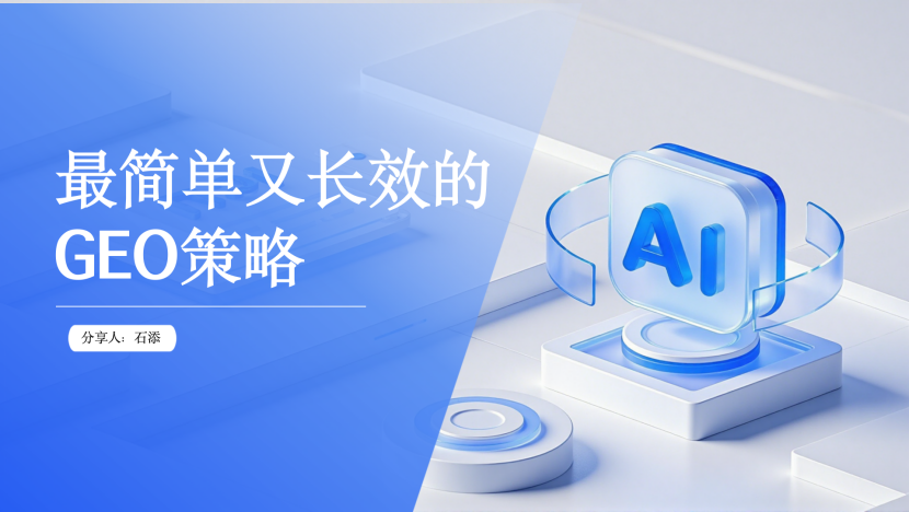 各位朋友,大家好!我是浙江站点智能技术有限公司的石添,接下来由我来和大家分享最简单又长效的GEO策略。