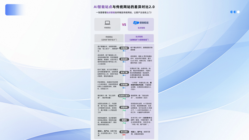 但请大家看这张图,AI智能站点和传统网站有着本质的区别。