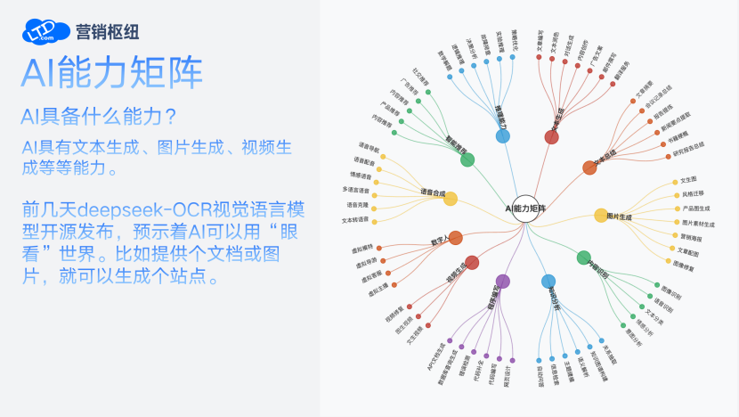 文本生成、图片生成、视频生成这些都不用说了,前几天 deepseek-OCR 视觉模型开源,更是让 AI 能 “眼看” 世界了 —— 给个文档或图片,说不定就能直接生成一个站点,像看图找错这种小事,对 AI 来说更是手到擒来,以后把需求和 AI 能力对接好,生成力肯定能大大提高。