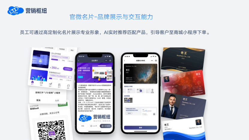 官微名片是个好东西,员工能用它展示专业形象,AI 还能实时推荐匹配的产品,直接引导客户去商城小程序下单。
