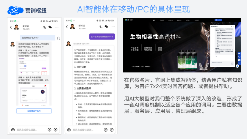 比如牙科模型材料,智能体能把它的特点(耐高温、高细节还原)、适用场景(隐形正畸牙模)讲得明明白白,客户有疑问随时问,不用等人工回复,7x24 小时都能服务,既省人力又能及时响应客户。