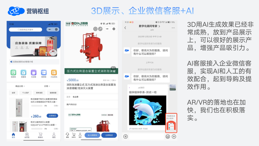 AI 还能接入企业微信客服,AI 先帮着解答基础问题,解决不了的再转人工,既当得了导购,又能提高效率,AR/VR 咱们也在推进,以后展示会更直观。